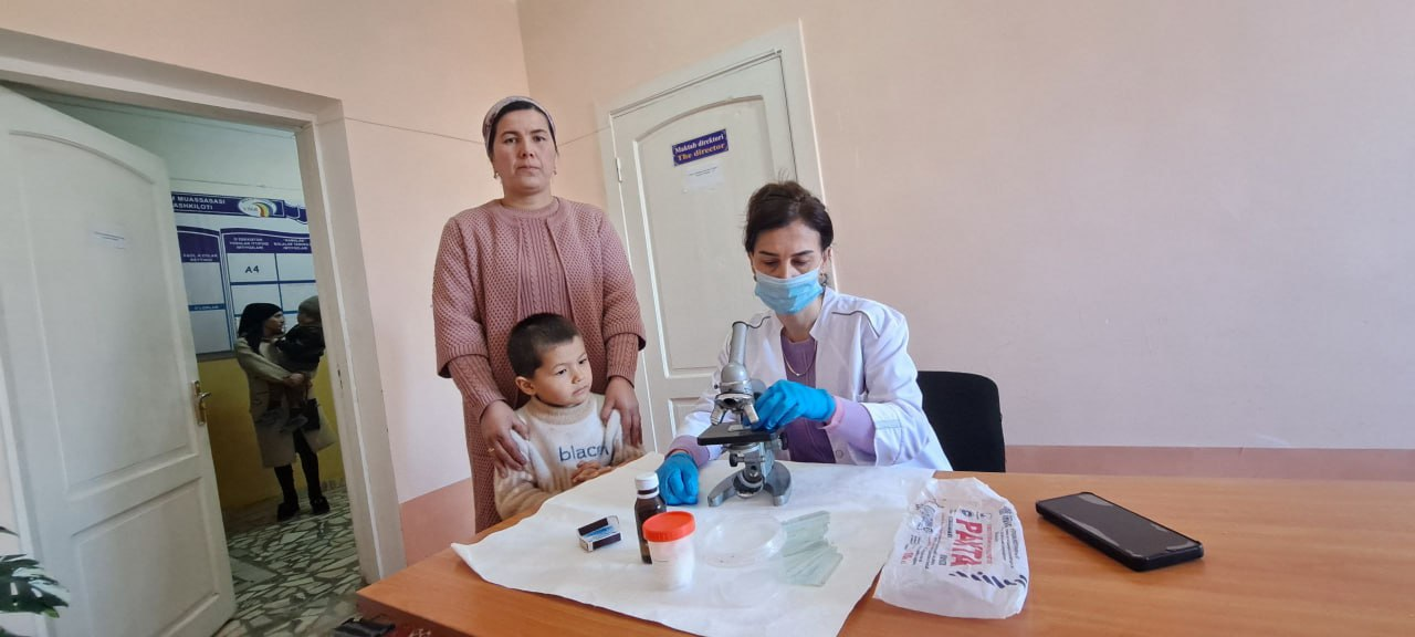 Uyushmagan bolalar gijja kasalliklariga bepul lobarotoriya usulida tekshirilib tavsiyalar berildi.