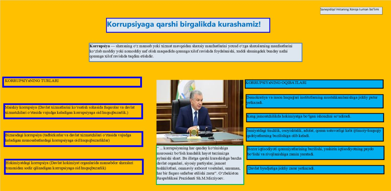 Sanepidqo‘mitaning Xonqa tuman bo‘limi xodimlari tomonidan “Madaniyat” mahallasida mahallabay usulida ishlar tashkil qilindi. Mahalla aholisiga yuqumli kasalliklarning oldini olish to‘g‘risida ma’ruza o‘qildi va uyma-uy yurib, hovli va