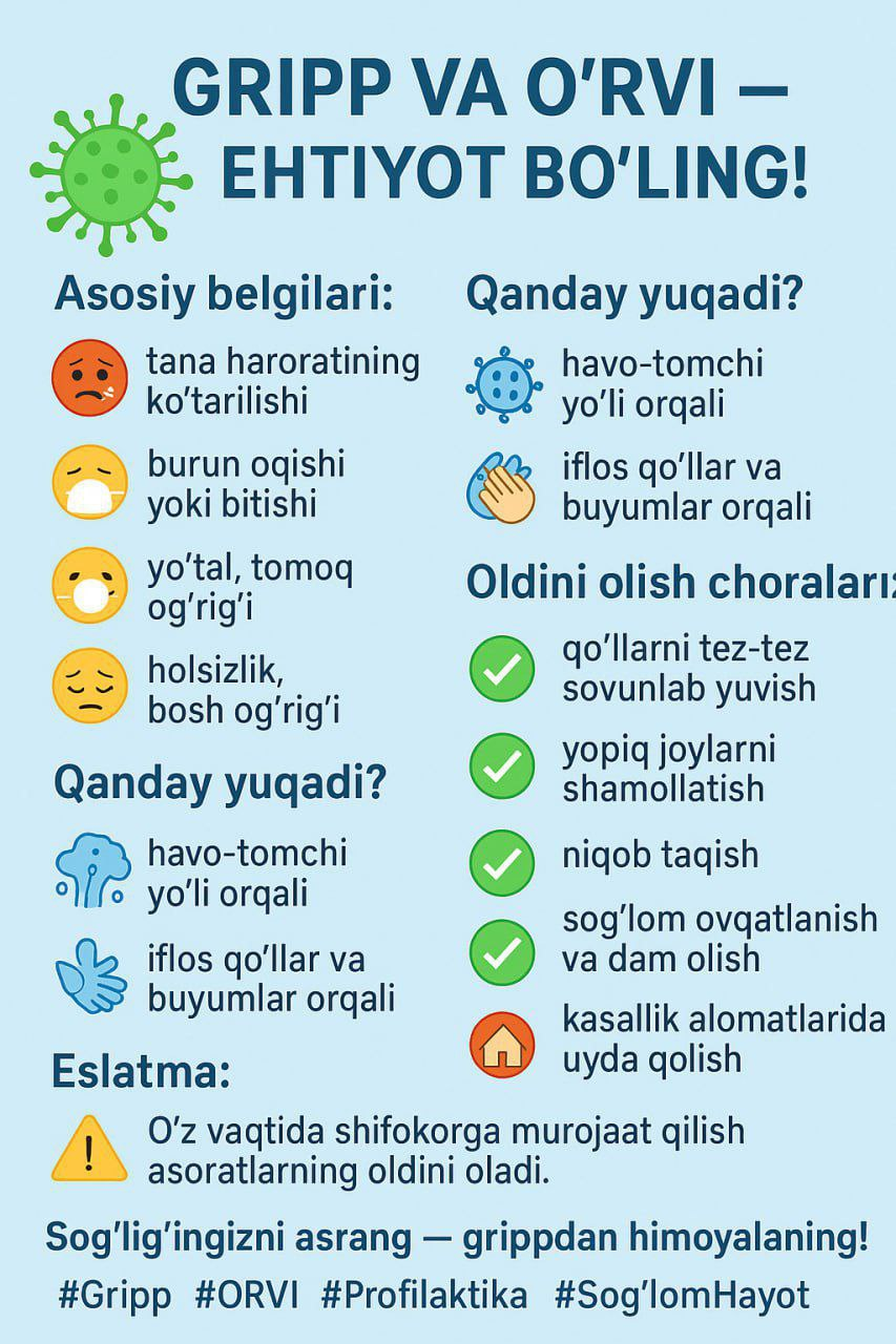 GRIPP VA O‘RVI — EHTIYOT BO‘LING!